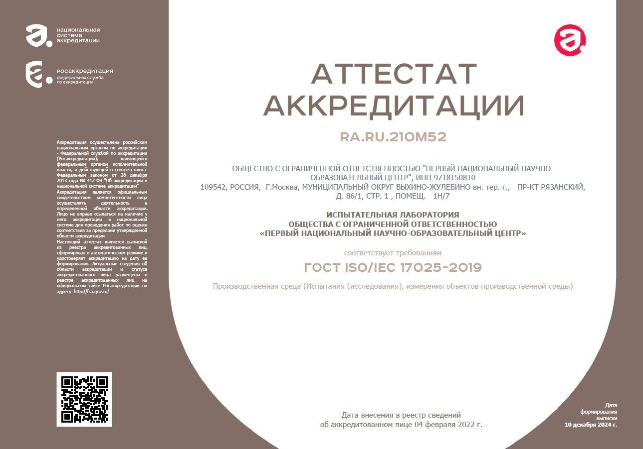 ООО "ПННЦ" (с НДС) Аттестат аккредитации №RA.RU.210М52 Регистрационный №643 в Реестре Минтруда